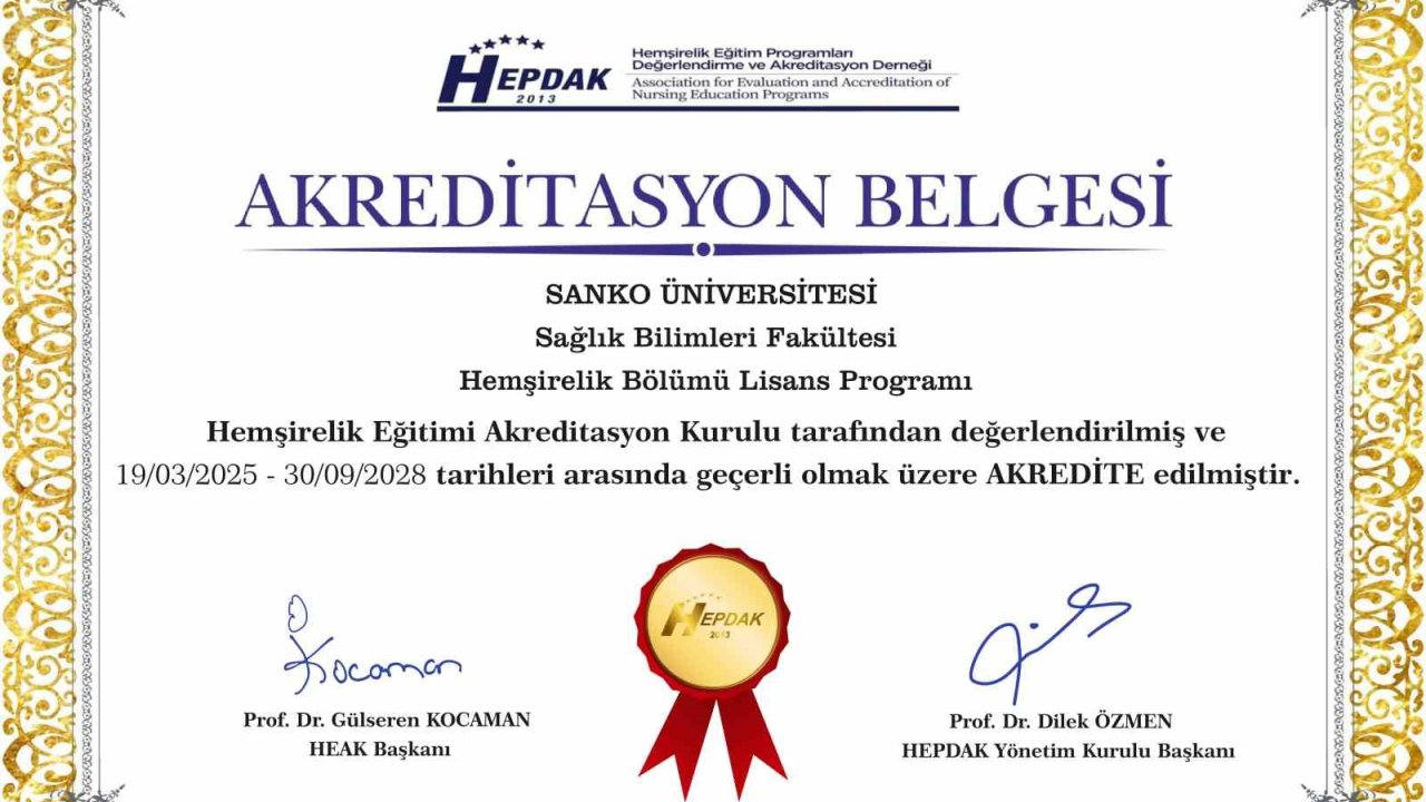 SANKO Üniversitesi Sağlık Bilimleri Fakültesi (SBF) Hemşirelik Programı, Hemşirelik Eğitim Programları Değerlendirme ve Akreditasyon Derneği (HEPDAK) Hemşirelik Eğitim Programları Akreditasyon Kurulu tarafından 19.03.2025 tarihinden 30.09.2028...