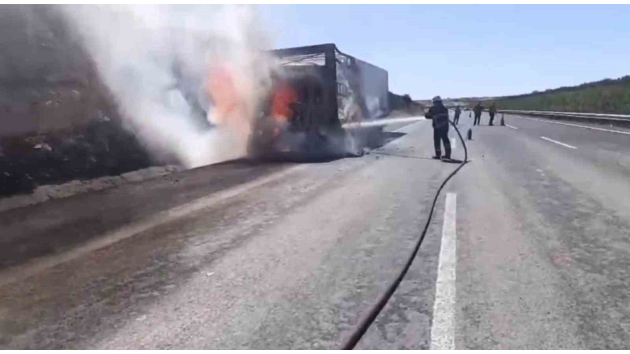 Şanlıurfa'nın Birecik ilçesinde alev alan saman yüklü tır kullanılmaz hale geldi.Edinilen bilgiye göre olay, Şanlıurfa-Gaziantep Otoyolu'nun Birecik mevkiinde meydana geldi. Sürücüsü ve plakası henüz belirlenemeyen bir tırın dorsesindeki saman balyaları bilinmeyen nedenle tutuştu. Durumu fark eden sürücü, aracı emniyet şeridine çekerek itfaiyeye haber verdi. İhbar üzerine olay yerine sevk edilen itfaiye ekipleri, yangına müdahale ederek alevleri güçlükle kontrol altına aldı.Yangında ölen ya da yaralanan olmazken tır tamamen yanarak kullanılamaz hale geldi. Olayla ilgili inceleme başlatıldı