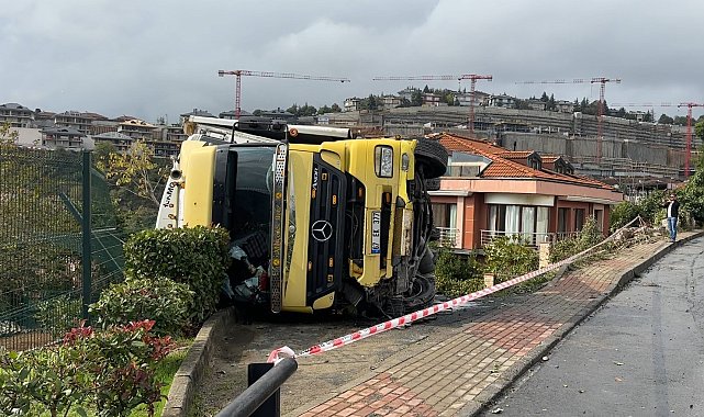 Sarıyer'de sürücüsünün direksiyon hakimiyetini kaybettiği tır devrildi