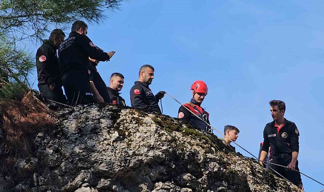 Sarp kayalıklarda mahsur kalan keçi kurtarıldı