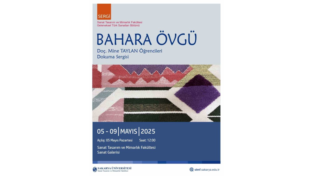 Sakarya Üniversitesi (SAÜ) Sanat, Tasarım ve Mimarlık Fakültesi Sanat Galerisi, 5-9 Mayıs 2025 tarihleri arasında "Bahara Övgü" adlı dokuma sergisine ev sahipliği yapacak.