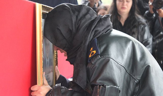 Şehit eşini askeri montuyla son yolculuğuna uğurladı