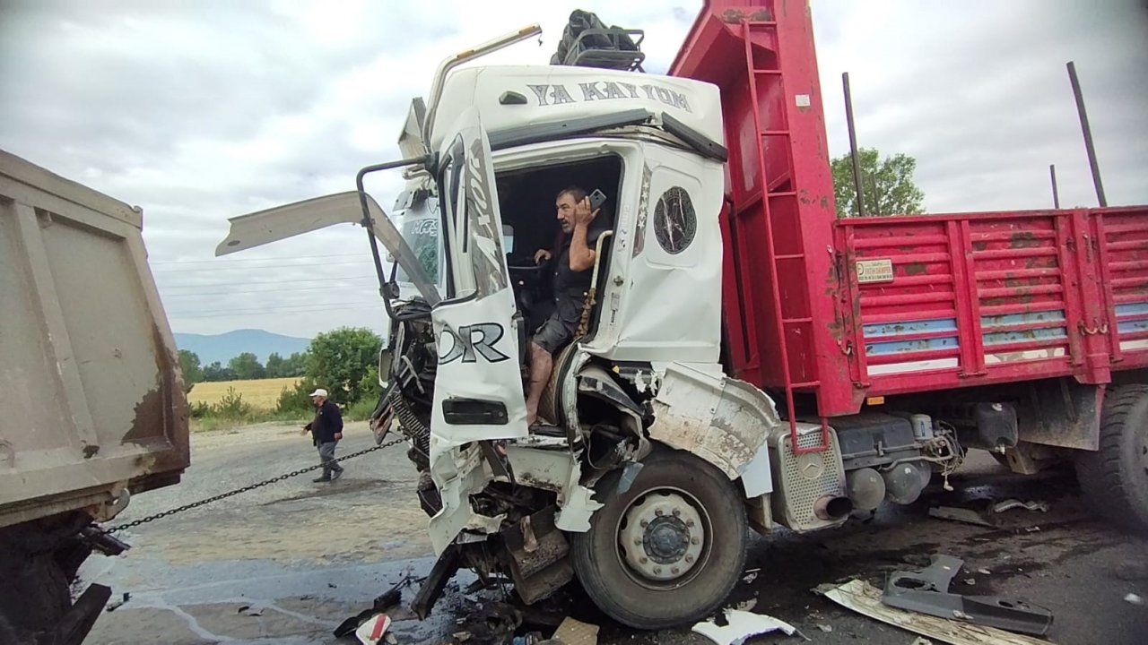 Bolu'da TEM Otoyolu'nda tır ile kamyonun çarpışması sonucu meydana gelen kazada, kamyon sürücü kabinde sıkışarak yaralandı.