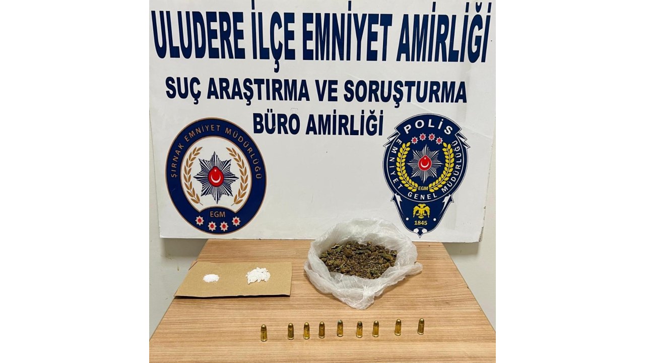 Şırnak İl Emniyet Müdürlüğü Narkotik Şube Müdürlüğü ekipleri tarafından il merkezi ve ilçelerde düzenlenen Narko-Alan uygulamasında hakkında kesinleşmiş hapis cezası bulunan 1 şahıs yakalandı.Şırnak İl Emniyet Müdürlüğü ekiplerinin uyuşturucu ile mücadele kapsamında yürüttüğü Narko-Alan uygulamasında "uyuşturucu madde imal ve ticareti" suçundan hakkında 16 yıl kesinleşmiş hapis cezası bulunan M.B. yakalandı. Gözaltına alınan hükümlü, işlemlerinin ardından Şırnak T Tipi Cezaevi'ne teslim edildi. Ayrıca Uludere ilçesinde güvenlik ekipleri tarafından bir araçta yapılan aramada 55 gram skunuk ve 5.83 gram metamfetamin maddesi ele geçirildi. Araç sürücüsü gözaltına alındı. Şüphelinin emniyetteki işlemlerinin ardından adliye sevk edileceği öğrenildi.Emniyet yetkilileri, gençleri zehirlemeye çalışanlara asla fırsat verilmeyeceğini belirterek, uyuşturucu ile mücadelenin kararlılıkla sürdüğünü vurguladı. Şırnak'ta göreve geldiği günden bu yana özellikle vatandaşların uyuşturucu ile mücadele konusunda taleplerine karşılık veren Şırnak İl Emniyet Müdürü Volkan Sazak, uyuşturucu ile mücadele için kurduğu özel ekiple vatandaşlardan tam not aldı.