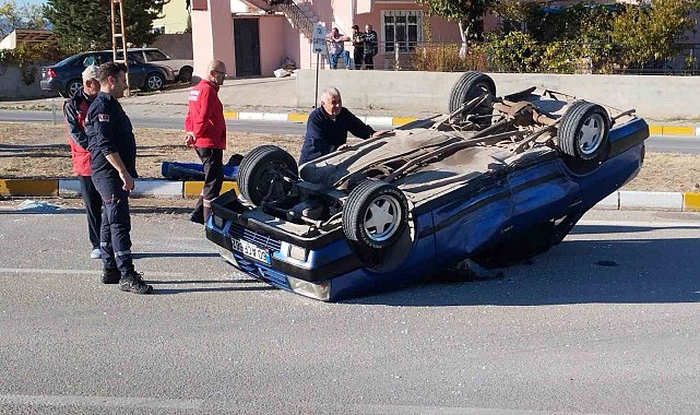 Sivas'ta meydana gelen trafik kazasında bir otomobil takla atarak ters döndü, kazada şans eseri yaralanan olmadı.