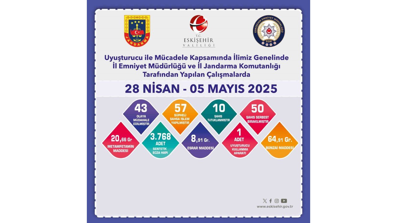 Eskişehir'de polis ve jandarma ekiplerince son 1 haftada 31 bin 627 araç denetlenirken, 9 bin 955 adet trafik cezası yazıldığı açıklandı.Edinilen bilgilere göre, İl Emniyet Müdürlüğü ve İl Jandarma Komutanlığı Trafik Denetleme Şube Müdürlüğü ekiplerinin trafik denetimleri sürüyor. Bu çerçevede, 28 Nisan - 5 Mayıs tarihleri arasında kent genelinde çalışma yapıldı. Ekiplerce yapılan denetimlerde, 4 bin 5 yük taşımacılığı, 885 yük taşımacılığı, 3 bin 380 alkol denetimi, 2 bin 135 motosiklet, 8 bin 714 emniyet kemeri ve 12 bin 508 diğer kontrol türleri gerçekleştirildi. Çalışmalar sonucunda 31 bin 627 araç kontrol edilirken, 9 bin 955 adet trafik cezası yazılıp, 313 araç trafikten men edildi ve 86 sürücü belgesine el konuldu. Ayrıca, ekiplerce 47 yaralanmalı ve 66 maddi hasarlı trafik kazasına da müdahalede bulunuldu.
