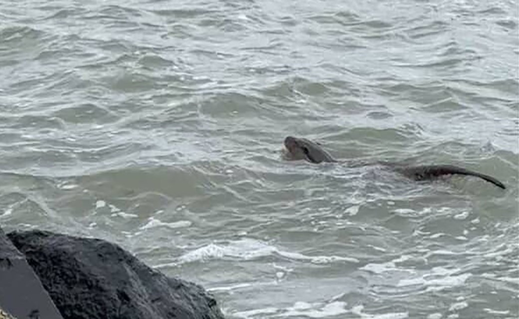 Marmara Denizi'nin Tekirdağ kıyılarında nadir görülen bir su samuru, denizde yüzerken vatandaş kamerasına yansıdı.