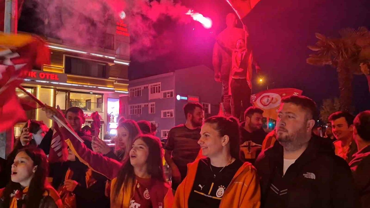 Trendyol Süper Lig'de 2024-2025 sezonunda şampiyonluğunu ilan eden Galatasaray'ın zaferi, Tekirdağ'da büyük bir coşku ve renkli görüntülerle kutlandı.Tekirdağ'ın Süleymanpaşa ilçesinde toplanan Galatasaray taraftarları, takımlarının şampiyon olmasının ardından Cumhuriyet Meydanı başta olmak üzere birçok noktada konvoylar oluşturarak kutlamalara başladı. Sarı-kırmızılı renklere bürünen araçlar kornalar eşliğinde caddelerde tur atarken, bazı taraftarlar ise ellerindeki meşaleler ve bayraklarla meydanlarda marşlar söyledi.Kutlamalarda meşaleler yakıldı, havai fişekler atıldı. Kalabalık taraftar grubu Galatasaray marşları eşliğinde sevinç gösterileri yaptı. Cumhuriyet Meydanı'nda toplanan yüzlerce kişi, şampiyonluk şarkılarıyla gece geç saatlere kadar eğlendi.Polis ekipleri kutlamaların olaysız geçmesi için meydan ve çevresinde güvenlik önlemleri aldı.Kutlamalar sırasında bazı çocuk taraftarların da sevinçlerine ortak olması dikkat çekti.