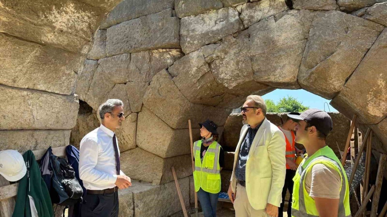 Zonguldak'ın Çaycuma İlçe Kaymakamı Adem Kaya, Batı Karadeniz'in önemli arkeolojik alanlarından biri olan Filyos beldesindeki Tios Antik Kenti'nde devam eden kazı çalışmalarını yerinde inceledi. Ziyaret sırasında Kaymakam Kaya'ya, kazıların başında bulunan Bartın Üniversitesi (BARÜ) Kazı Başkanı Prof. Dr. Şahin Yıldırım eşlik etti.M.Ö. 7. yüzyılda kurulduğu bilinen ve yaklaşık 5 bin kişilik kapasiteye sahip olan Tios Amfi Tiyatrosu, arkeologlar tarafından titizlikle gün yüzüne çıkarılıyor. Yapının orijinal dokusuna sadık kalınarak yürütülen kazılar, antik dönemin mimari estetiğini yeniden ortaya koymayı hedefliyor.İncelemeler sırasında Prof. Dr. Şahin Yıldırım, Kaymakam Kaya'ya kazı sürecine ilişkin teknik bilgiler vererek, antik tiyatronun tarihi önemi ve restorasyon süreci hakkında ayrıntılı sunumda bulundu.Kaymakam Adem Kaya, inceleme sonrası yaptığı açıklamada, Tios Amfi Tiyatrosu'nun tamamlandığında bölge turizmi açısından büyük bir potansiyele sahip olduğunu belirtti. Kaya, "Bu tür tarihi yapılar yalnızca geçmişi günümüze taşımakla kalmaz, aynı zamanda ekonomik ve kültürel anlamda da bölgeye canlılık kazandırır. Çalışmaları yakından takip etmeye ve desteklemeye devam edeceğiz" dedi.