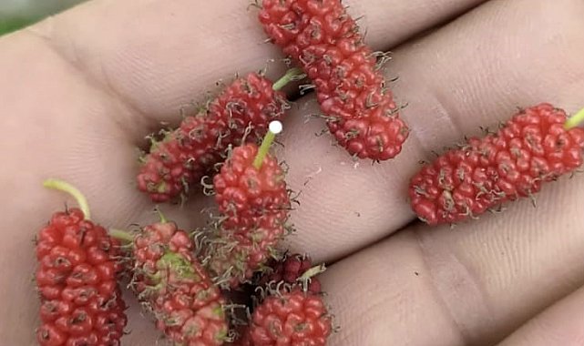Tunceli'de, kırmızı dut ağacı sonbaharda ikinci kez meyve verdi.