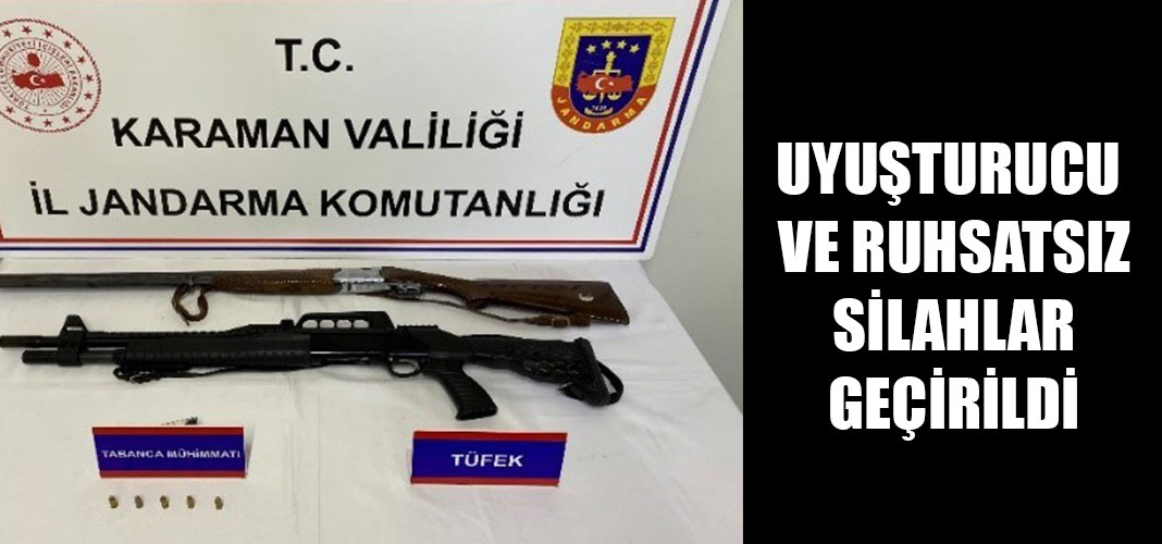 Karaman'da jandarmanın yaptığı uygulamalarda çeşitli suçlardan aranan 1 kişi tutuklanırken, uyuşturucu ve ruhsatsız silahlar ele geçirildi.