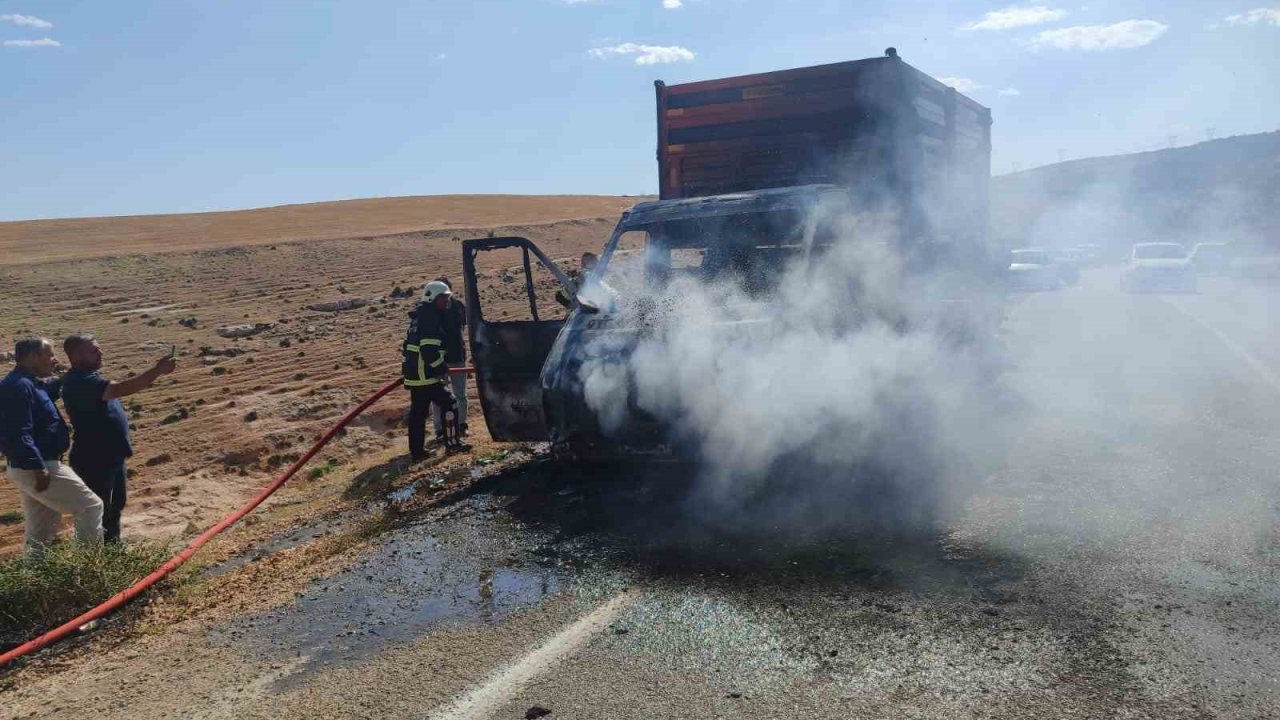 Adıyaman'ın Besni ilçesinde üzerinde traktör römorku bulunan kurtarıcı kamyonet alev topuna döndü.