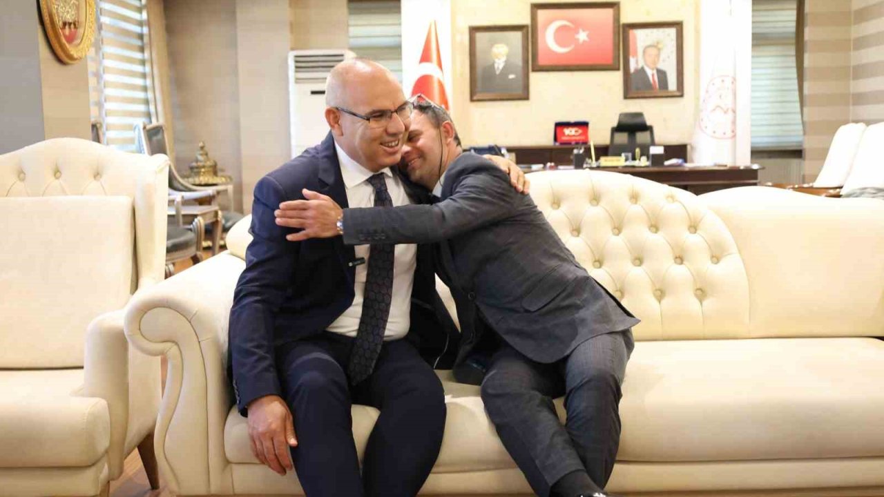 Ağrı Valisi Mustafa Koç, toplumun sevilen yüzlerinden biri olan Down sendromlu Cemal Aksakboğa'yı Valilik makamında ağırladı.Göreve başladığı günden bu yana vatandaşlarla iç içe olan, samimiyeti ve gönül köprüleri kuran tutumuyla kamuoyunun takdirini kazanan Vali Koç, bu kez de yürekleri ısıtan bir buluşmaya ev sahipliği yaptı. Ziyaret kapsamında Down sendromlu Cemal Aksakboğa'yı Valilik makamında misafir eden Vali Koç, gösterdiği yakın ilgi ve şefkatle takdir topladı.Şeyh Edebali'nin "İnsanı yaşat ki devlet yaşasın" sözünü şiar edinen Vali Koç, her fırsatta olduğu gibi bu özel buluşmada da vatandaşların gönlünde yer edindi.Buluşmada sıcak ve içten anlar yaşanırken, Cemal Aksakboğa'nın neşesi ve samimi davranışları dikkat çekti. Ziyaret boyunca makam odasını kahkahalar ve sevgi dolu bakışlar doldurdu. Vali Koç, Cemal'e makam kapısının her zaman açık olduğunu ifade ederek, "Sen bizim kardeşimizsin. Ne zaman istersen, başımızın üstünde yerin var" dedi.Vali Koç, ziyaretin ardından yaptığı açıklamada,"İlimizin sevilen yüzlerinden, samimiyetiyle herkesin gönlünde taht kuran Down sendromlu Cemal kardeşimizi Valiliğimizde misafir ettik. Cemal'in içten tebessümü ve hayat dolu enerjisi, bizlere sevginin, iyiliğin ve kardeşliğin ne denli güçlü olduğunu bir kez daha hatırlattı. Her zaman olduğu gibi, özel gereksinimli kardeşlerimizin yanındayız; onların mutluluğu, bizim en büyük kazancımızdır" dediZiyaretin sonunda Cemal Aksakboğa, kendisine gösterilen ilgi ve sevgiden dolayı Vali Koç'a teşekkür etti. Samimiyetiyle Vali Koç'un gönlünü bir kez daha fetheden Cemal, Valilikten ayrılırken el sallayarak, "Yine geleceğim" diyerek vedalaştı.