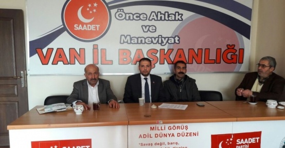 Saadet Partisi Van İl Başkanı Özay İlhan, “Sayın vekilimizin arzusuyla kurulan ve bir yıldan beri Van’ımızın hiçbir sorununa somut çözüm üretemeyen sözde güçbirliği platformunun çöktüğü gerçeği ortadadır” dedi.Saadet Partisi...