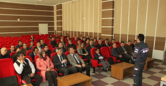 Van İl Milli Eğitim Müdürlüğünde görev yapan idareci ve personele ‘Kimyasal Tehditler’ konulu eğitim verildi.İl Milli Eğitim Müdürlüğü Sivil Savunma Bölümü koordinatörlüğünde Milli Eğitim Müdürlüğü toplantı salonunda düzenlenen programda, İl Afet ve Acil Durum Müdürlüğünün uzman personeli tarafından eğitim verildi. AFAD uzmanları; kimyasal, biyolojik, radyolojik, nükleer gibi tehditler hakkında temel bilgiler aktarıldı. Kimyasal olayların tarihçesi, kimyasal ajanların sınıflandırılması ve kimyasal saldırılardan korunma yöntemleri hakkında bilgiler veren uzmanlar, dünyanın doğal afetlerle her zaman karşı karşıya kaldığı gibi kimyasal tehditlerle de karşı karşıya kalabileceğini dile getirdiler.Dış kimyasal tehditlerin yanı sıra günlük olarak kullanılan evsel kimyasallara da dikkat çeken uzmanlar, bu tür kimyasal tehditlere karşı alınması gereken önlemler, kimyasal tehdit anında yapılması gereken davranışlar hakkında da katılımcılara bilgiler verdiler.