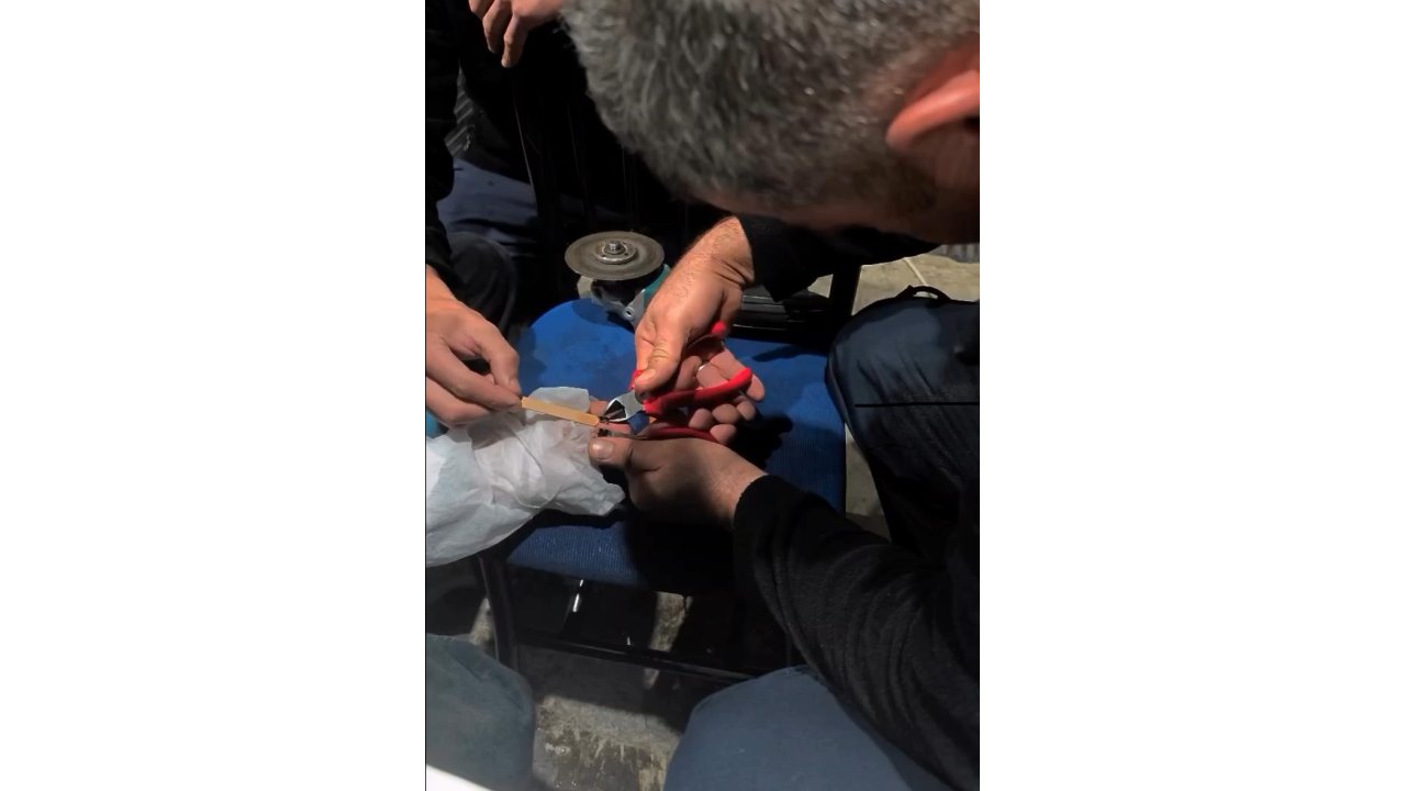 Çankırı'da bir vatandaşın parmağına sıkışan yüzük, itfaiye ekipleri tarafından kesilerek çıkartıldı.