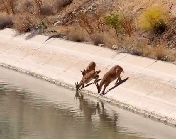 Yaban Keçileri Sulama Kanalında Su İçerken Görüntülendi
