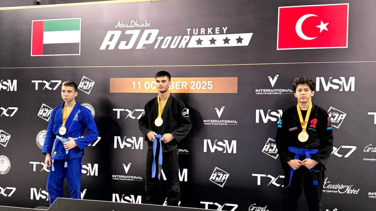 AJP Tour Turkey National Jiu-Jitsu Championship 2025'te mücadele eden 15 yaşındaki Yakın Doğu Spor Kulesi sporcusu Deniz Turan, 66 kilo genç erkekler kimonulu (Gi) kategorisinde altın madalya, kimonusuz (No-Gi) kategoride ise gümüş madalya kazandı.