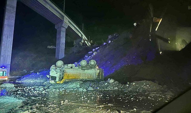 YHT şantiyesinde 15 metre yükseklikten devrilen kamyonun sürücüsü ağır yaralandı