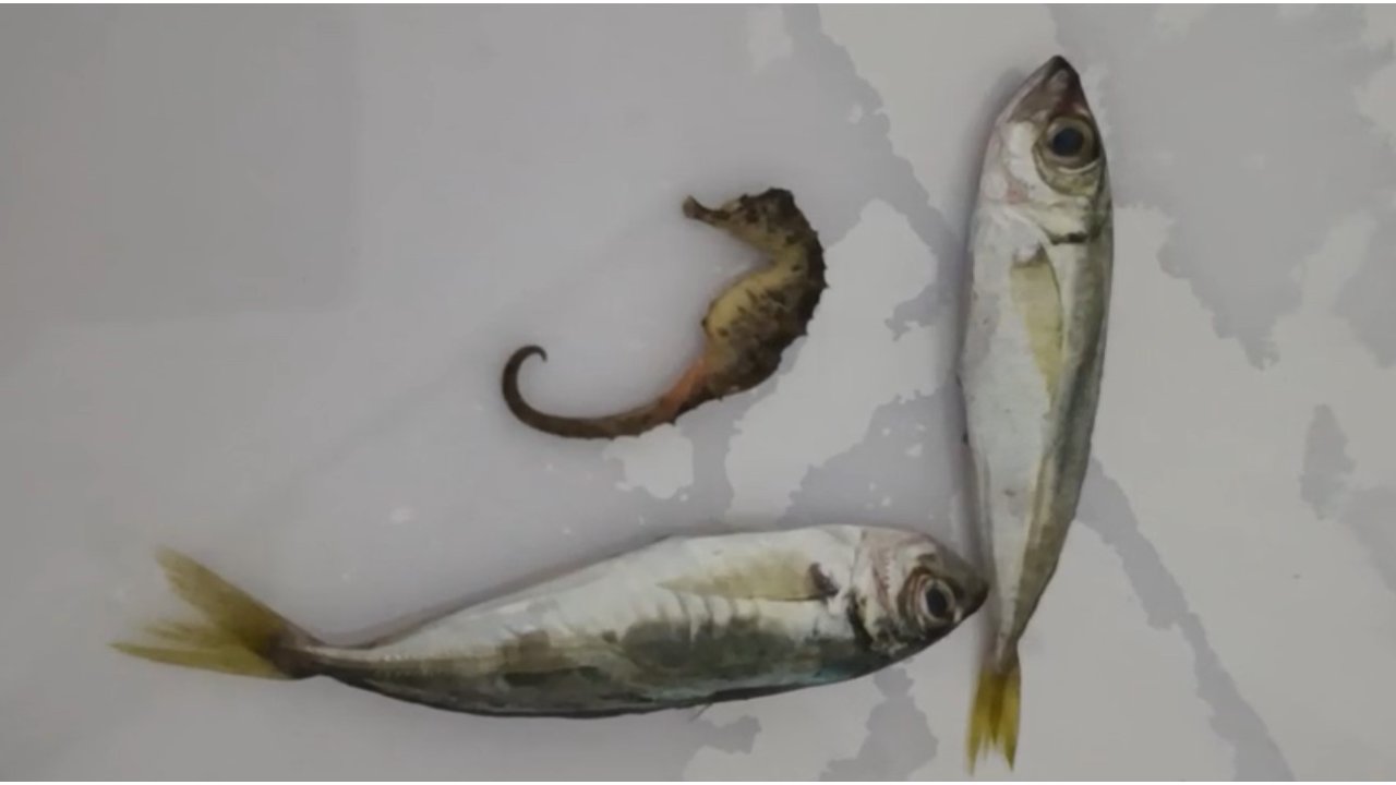 Hakkari'nin Yüksekova ilçesinde yaşayan Mücahit Özaras'ın çarşıdan aldığı balıkların içinden denizatı çıktı.